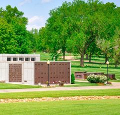 Our community mausoleum in the center of the cemetery includes spaces in the inside and outside-facing walls, providing above-ground burial.